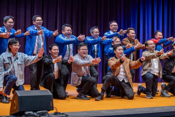 The Human Formation performers delivering a powerful and rhythmic performance, showcasing the youth’s vitality and unity in action.Young Mister Group and young men’s division members performing Soka Gakkai songs in an energetic and refreshing style, enlivening the meeting atmosphere.Leaders responding enthusiastically to the speakers as they reaffirm their determination to advance amid an atmosphere of encouragement and joy.SGM General Director Koh Sia Feai delivering an address, urging all leaders to seize the time, take immediate action and advance youth shakubuku through united effort.