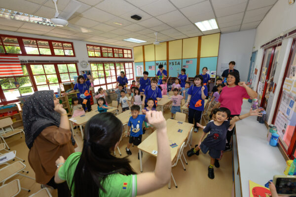TSS held a special assembly, in which principal Ho Lee Choo welcomed the delegates warmly and the children interacted with them through song and dance.