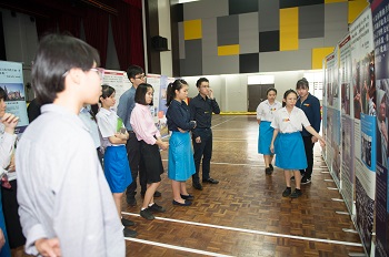 The exhibition, displayed in two languages, were set in one of the school’s halls, with spaces prepared for viewers to have conversations and exchange views. Students were seen eagerly sharing their ideas and opinions with each other.