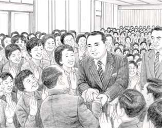 Just before 6:00 p.m., the side door opened and there was Shin’ichi. All eyes turned and everyone cheered and applauded. Members from Hiroshima Prefecture’s Etajima, Nomijima and Kurahashijima Islands stood up and expressed their joy by unfurling a ffive-metre...