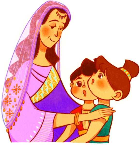 皇后温柔地拥抱他们,说:“不是要去改变父王,而是要让他看到你们修行佛法之后改变的样子。”
