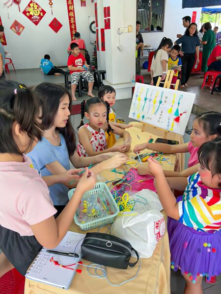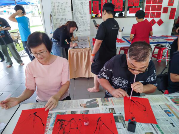 活动现场设有摊位展示各类文化活动,包括搓汤圆、吹画梅花、书法体验、象棋对弈、跳格子、抛石子、中国剪纸、马来播棋及中国结编织等,家长与孩子共同参与,在互动中感受多元文化的和谐之美。
