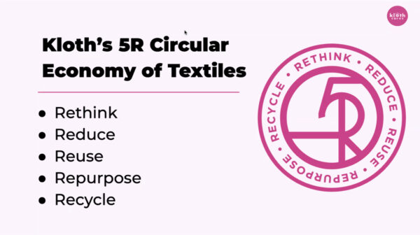 此外,她也介绍了“Kloth 循环”的各项环保倡议,包括衣物回收、纺织再造与推广可持续服饰等。她鼓励听众身体力行“纺织循环五原则”,以具体行动减少纺织浪费。