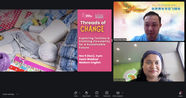 2025 年 11月 9 日,SGM 与由女性领导的社会企业“Kloth 循环”携手,通过 Zoom 平台举办了一场主题为“改变的‘线’索——探索纺织品与服装循环利用,共创可持续未来”环保线上讲座,共有 161 人踊跃参与。