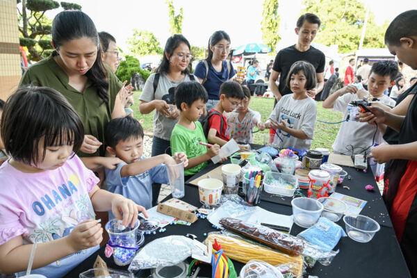 互动体验区则设有创意摊位、艺术展览、美食餐车、游戏区、环保 LED 杯 DIY,以及亲子和儿童区,涵盖各年龄层。多个项目由青年带领,现场气氛热烈而温馨,处处可见和平文化的生活中的展现。