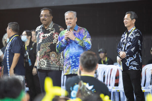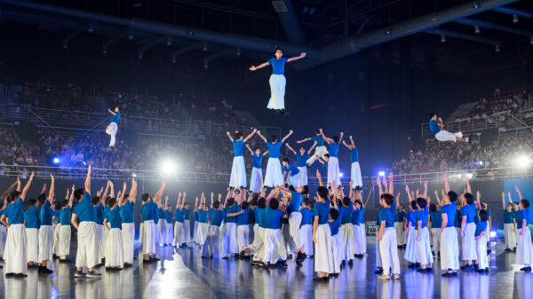 两位创价青年——萧荣志医生与周奥利文创品牌创办人站上舞台,真挚地分享各自跨越内心彷徨的成长旅程,引起无数观众的共鸣。文化表演继续引领观众情绪——和谐悦耳的合唱,将体育馆转为大型卡拉 OK 现场;英姿飒爽的鼓笛队乐队和旗舞表演,抛旗与接旗皆见青年不懈练习的成果;压轴出场的朝阳体操队带来振奋人心的演出,各种令人叹为观止的队形变化和造型,震撼观众发出惊呼、不断报以雷鸣般的掌声。全体表演者总汇、活力四射的“OMBAK——成为和平的浪潮”主题曲《我就是浪潮》大合唱,感染观众忍不住一起挥手唱和,仿佛在鼓励着每一个人相信自己可以成为创造和平浪潮的一份子。