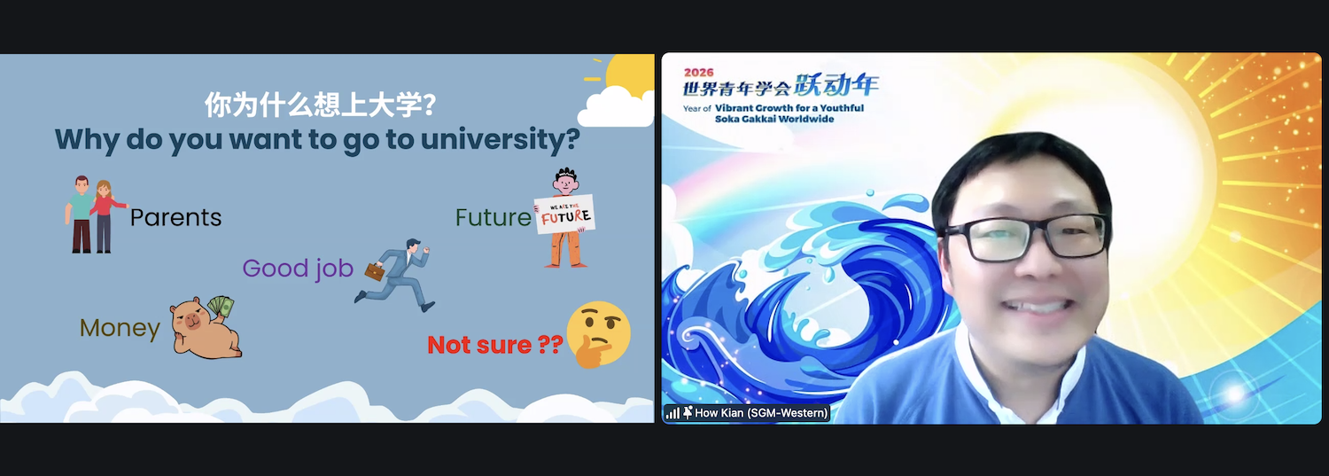 SGM教育组委员陈涍渐讲解高等教育的意义,鼓励中学生不被学业成绩设限,而应以更长远的人生视角,思考如何为自己与他人创造价值。