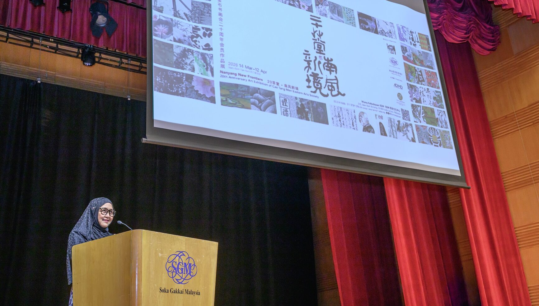 本次展览由SGM与草堂门金石书画会联办。开幕典礼汇聚艺术界前辈与文化界人士共同见证。马来西亚国家美术馆副总监罗哈娜·莫哈末·尤索夫代表国家视觉艺术发展局总监致辞并主持开幕暨画册推介。