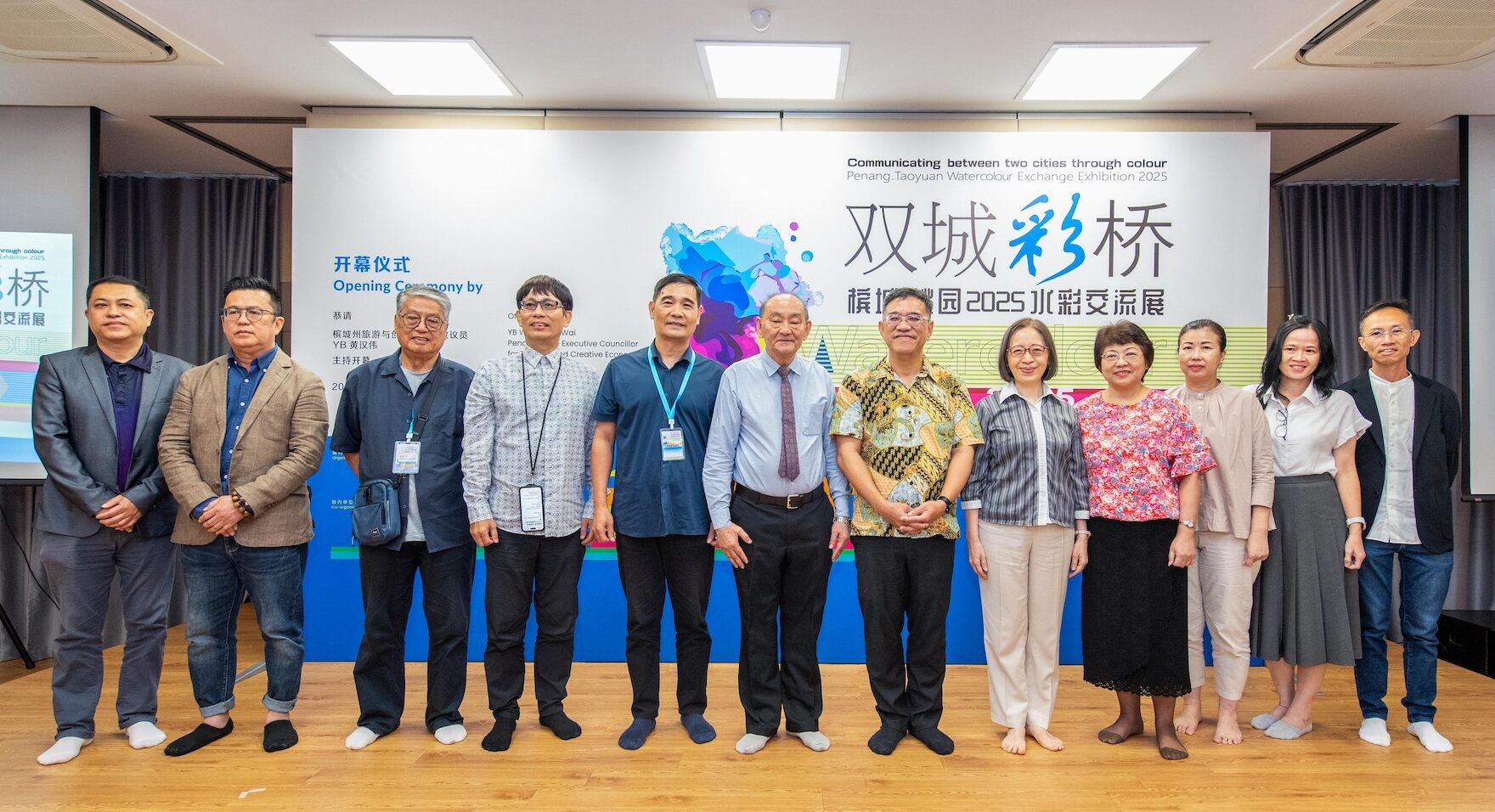 “双城彩桥——槟城·桃园2025水彩交流展”于今年 5 月在台湾桃园文化局展出后,于8月9日至24日巡展至SGM槟城文化会馆,展出18位槟城画家与29位台湾画家,共65幅水彩作品,吸引1760人出席参观,反应热烈。
