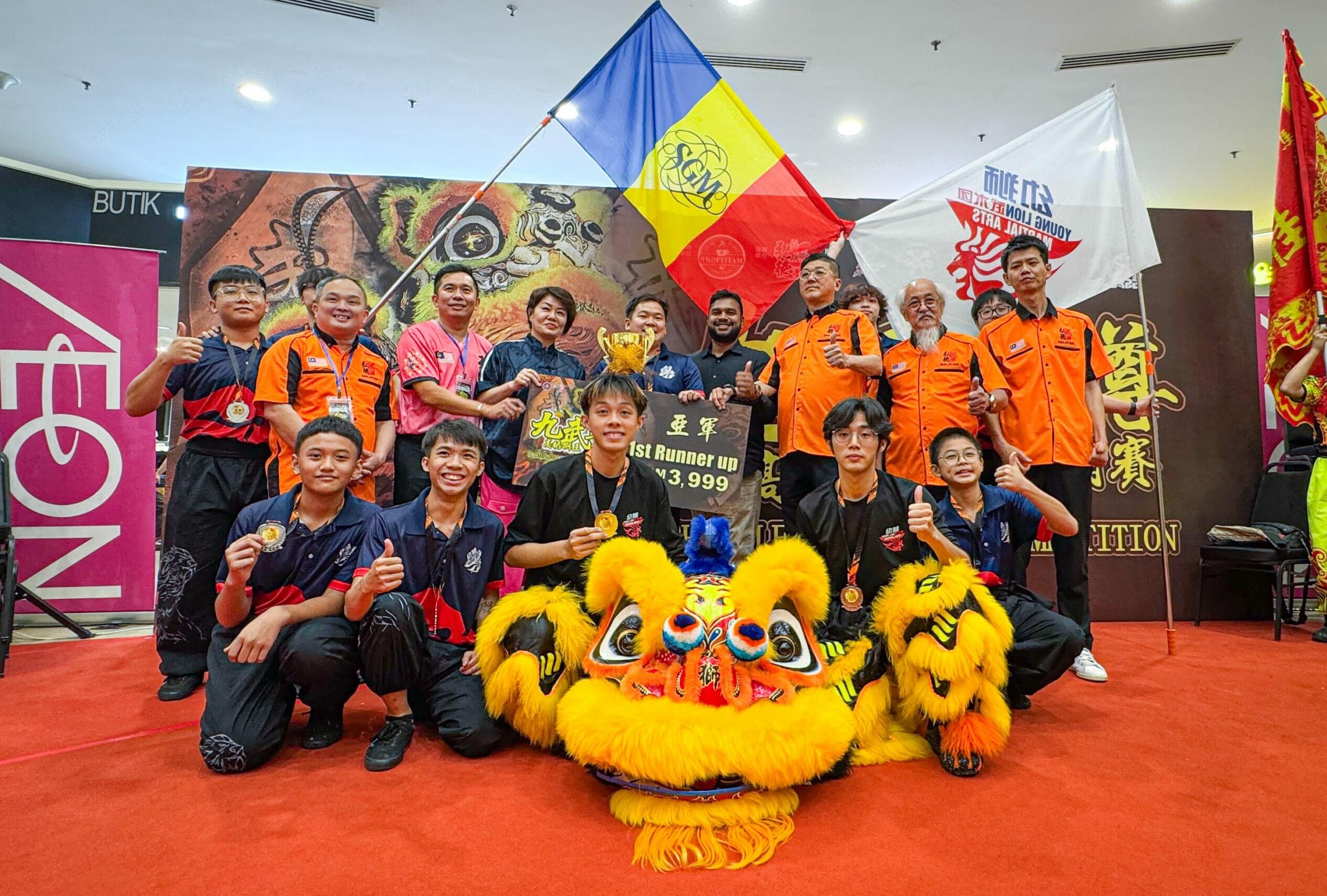 SGM幼狮武术团于2025年8月3日,在雪兰莪怡观园商场参加由9 Kopitiam主办、马来西亚弘德龙狮体育总会协办的“九武至尊高桩狮王争霸赛”。全国共有17支狮队参赛,包括麻坡关圣宫龙狮团。