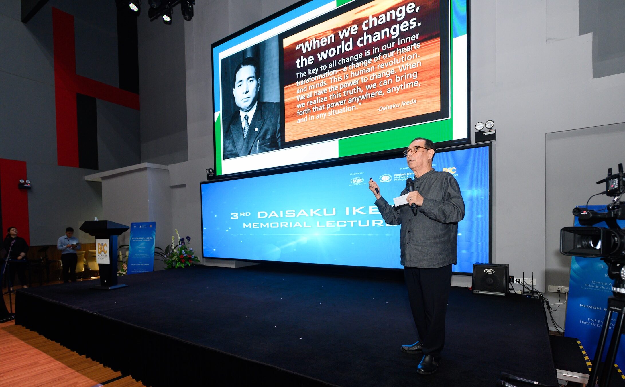 为缅怀池田会长一生九十五载致力于和平、文化与教育的崇高贡献,SGM于2026年1月11日举办第三届池田大作纪念讲座。讲座由联合国全球契约网络(马来西亚与汶莱)及十五碑亚洲学院教育集团(Brickfields Asia College Education Group)联合支持,并首次移师十五碑亚洲学院举行,此前两届讲座皆在马来西亚国际伊斯兰思想与文明研究院(ISTAC-IIUM)举办。现场共吸引341名来宾参与,并有约300人通过线上直播同步聆听。
